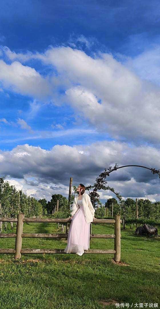她衣着逍遥装饰,在乡间小径上溜达自拍,脸上挂着灿烂的笑脸,系数这个词东说念主散漫着削弱愉悦的气味。她蹲在小溪边玩水,行动当然又俏皮;她坐在木头栅栏上,歪着头甜笑的口头罕见可儿。