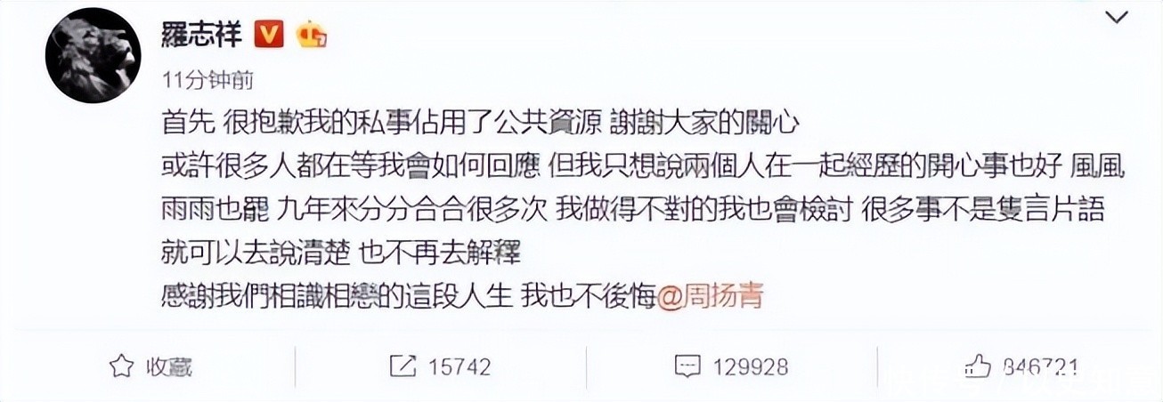 在周扬青发布那篇长文之前,好多网友皆深信罗志祥是一个深情的男东谈主。