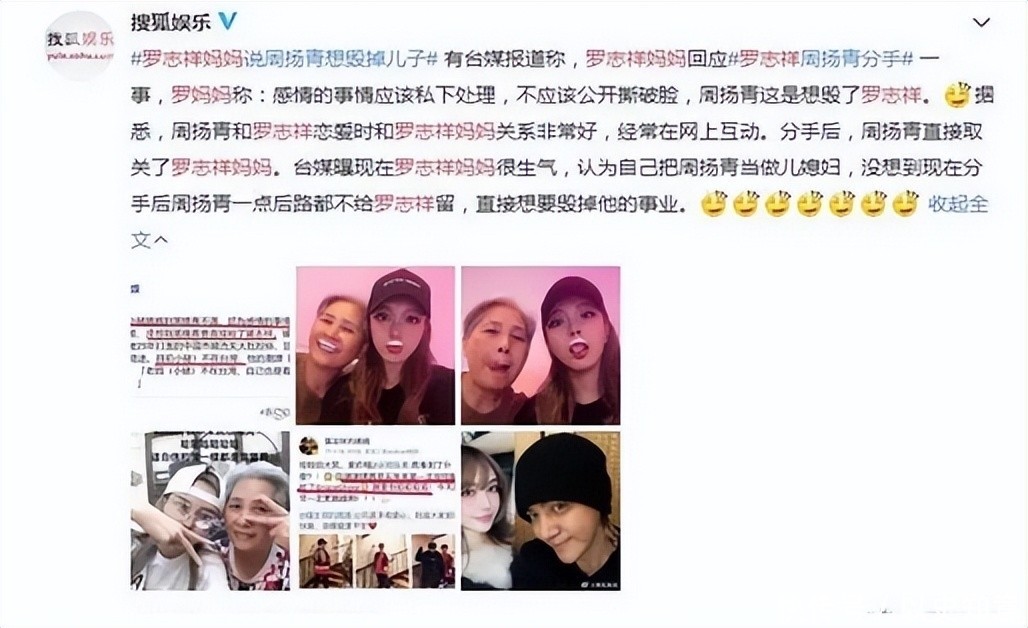 与此同期,周扬青与罗志祥母亲的关系也十分亲密。