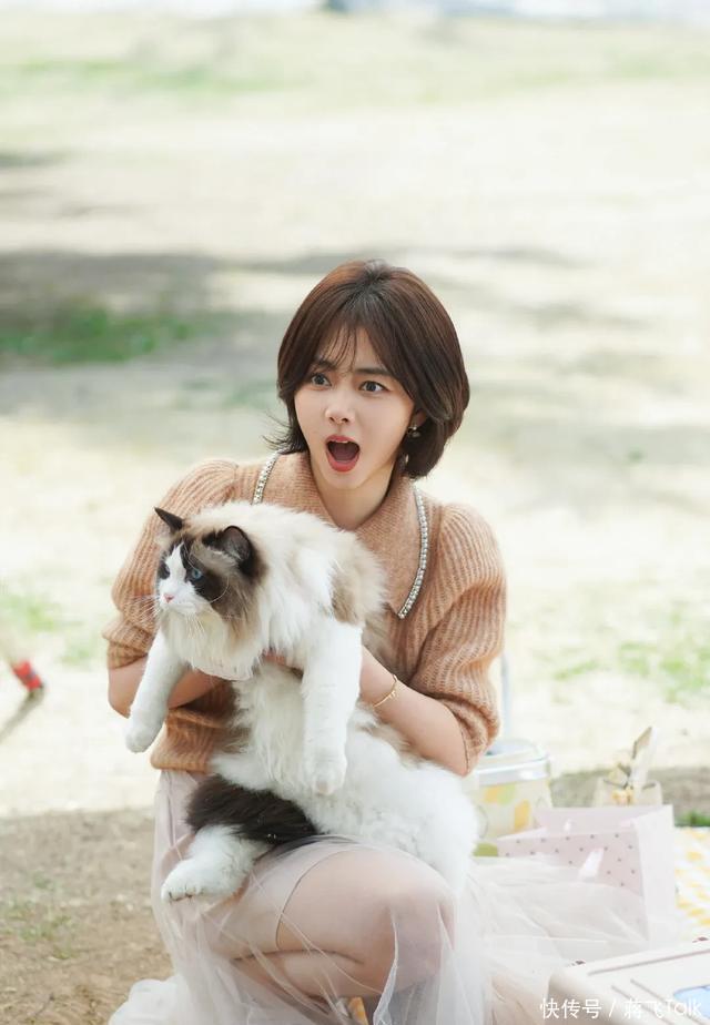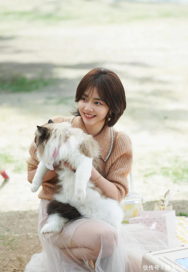 和猫猫互动的谭松韵好可人,两个大漂亮!