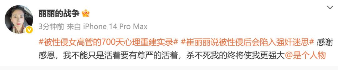 刚刚,崔丽丽发文:我不成仅仅辞世,要有尊荣的辞世,杀不死我的终将使我更坚强。