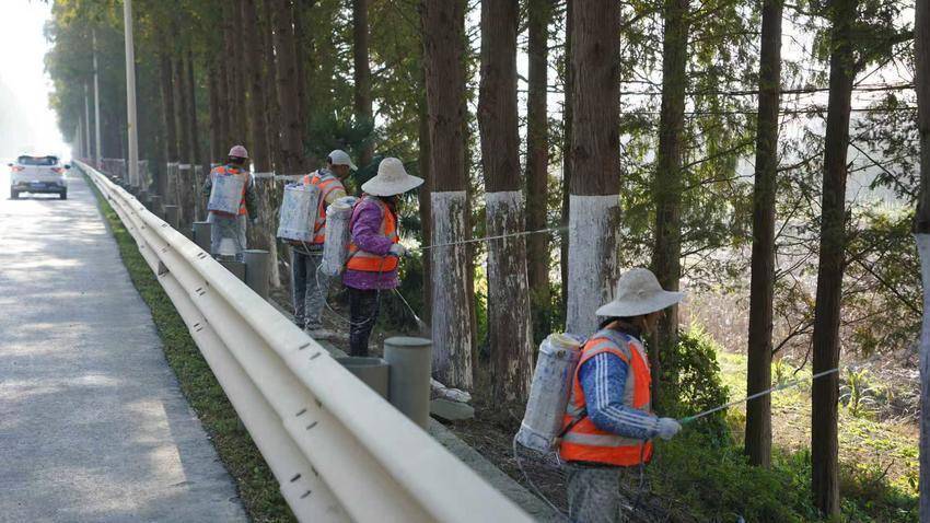 据潜江市公路业绩发展中心有关认真东说念主先容,路树刷白看似“小举措”,实则蕴含三重实痛恨能。一是防冻防虫,涂白剂能反射阳光,减少树干日夜温差,幸免冻裂的同期减少病虫害,看管树木安全越冬;二是安全警示j9九游会官方,白色涂层夜间反皎皎然,尤其在弯说念、路口等关节路段,能勾画公路边界,教唆司机详实路况,裁减事故风险;三是好意思化路域,整都整齐的“白裙子”与公路景不雅相融,让一起环境更整洁好意思不雅,进一步擢升人人的出行体验。