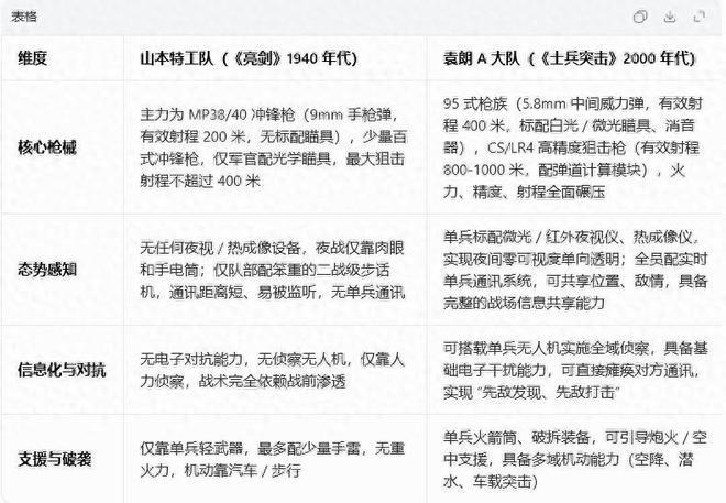 单兵才调方面,两边应该处于捏平情景,A大队的特种兵王人是单兵战役力极强的存在,连许三多王人一个一招秒掉一个女毒贩,更何况是袁朗,那时,袁朗一个过肩摔就把许三多给放倒了,而山本特工队一运行也有段剧情是他们徒手杀掉三个手捏短刀的战俘的桥段,也能阐发这群士兵的战役力不差,这方面,两边应该王人是平手的。