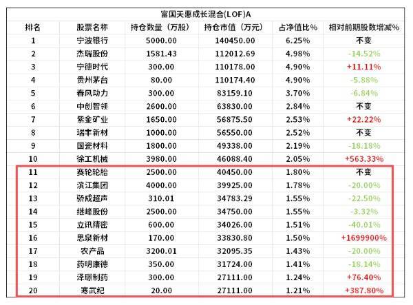 咱们以朱少醒在管的富国天惠成长搀杂为例,拆解其最新暴露的隐形捏仓(第11-20大捏仓),捏仓概况如下: